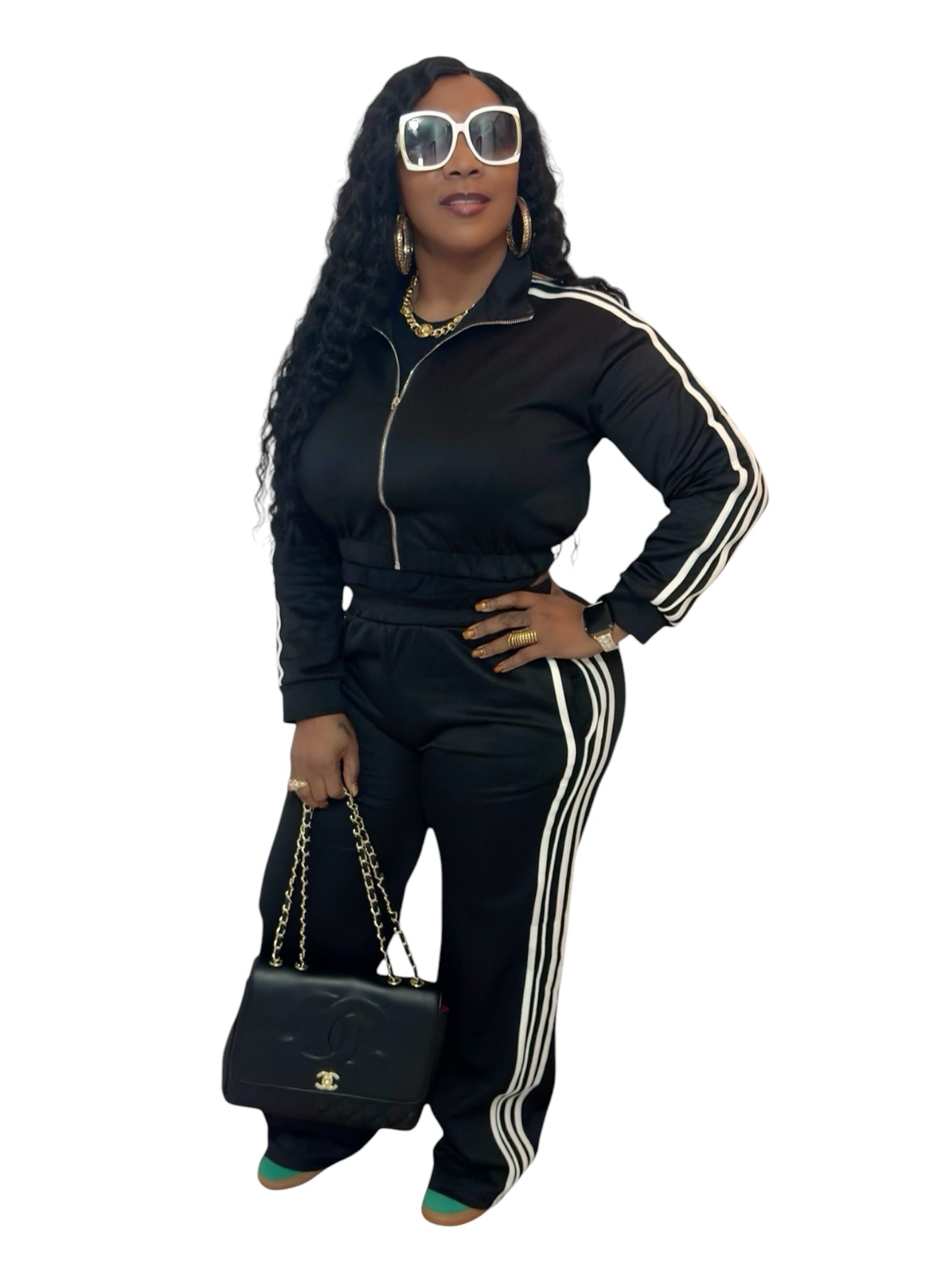 These sweatsuits are super stretchy, the pants are loose fitted at the bottom, they are true to size.
